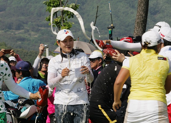 한편 국가대표출신의 '까만콩' 임성아(27.현대스위스저축은행)는 13번홀(파3)에서 티샷한 볼이 핀앞 3.5m 낙하하더니 그대로 홀로 빨려 들어가 홀인원을 기록하며 이븐파를 쳐 합계 4오버파 292타로 공동 13위로 경기를 마쳤다.