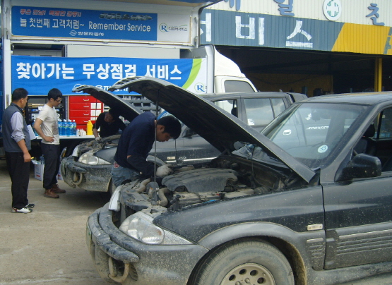 ▲쌍용차가 울릉도를 포함한 11개 도서지역에서 무상점검 서비스를 펼친다. 사진은 지난해 백령도에서 치러진 '무상점검 서비스' 모습. (사진=쌍용차)