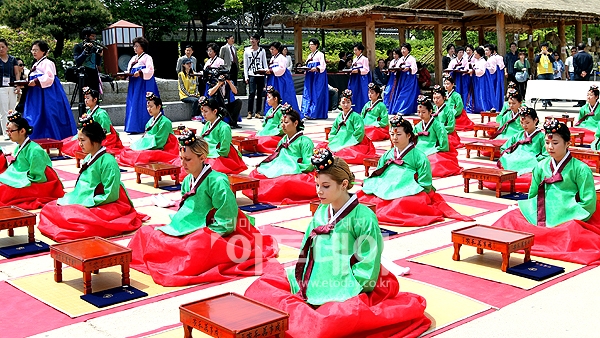 제 39회 성년의 날 기념행사가 열린 16일 오전 서울 남산골 한옥마을에서 성년자들이 한복을 곱게 차려입고 성인의로서의 예를 갖추고 있다.