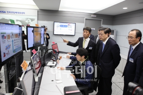 김황식 국무총리는 KISA로부터 최근 몇 달간 사회적 이슈가 된 디도스 공격 관련 대응 현황과 기업보안 현황을 보고 받았다. 또한, 악성코드에 감염된 좀비 PC를 통해 중요문서와 비밀번호가 유출되는 해킹시연도 참관했다.