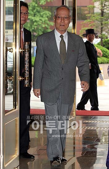 이준용 대림산업 명예회장이 19일 오후 전국경제인연합회 회장단 회의에 참석하기 위해 소공동 롯데호텔로 들어서고 있다.