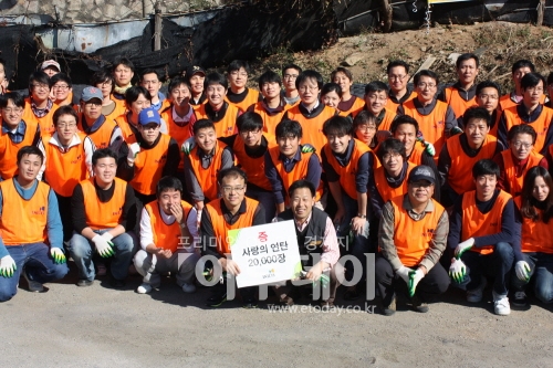또한 매년 창립 기념일에는 임직원 전체가 뜻깊은 행사를 갖는다. 저소득층 가정을 대상으로 사랑의 연탄나눔 봉사활동을 통해 독거노인, 소년소녀 가장, 모자가정 등 연탄 조달에 어려움이 있는 지역에 직접 연탄을 배달한다. 이를 통해 나눔을 중시하는 기업문화를 정착시키고 ‘소유보다는 경험’의 문화를 직원들이 몸소 느낄 수 있도록 한다.