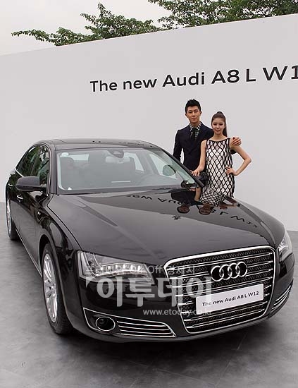 아우디 코리아가 26일 오전 성북동 북악스카이웨이에 위치한 A8라운지에서 신차발표회를 열고 아우디의 최상위 플래그십 모델 ‘뉴 A8L W12'를 소개하고 있다. 뉴 A8L W12는 가장 다이내믹한 하이엔드 프레스티지 세단으로 고효율의 강력한 6,300cc 12기통 FSI 가솔린 직분사 엔진, 경량의 알루미늄 차체, 운전자 어시스트 시스템, 풀 LED 헤드라이트, 장인정신이 깃든 인테리어가 적용되었다. 특히 이번에 선보인 A8L W12 모델은 릴랙세이션시트가 적용돼 뒷좌석 승객에게 비행기 퍼스트클래스 수준의 안락함을 제공한다. 국내 판매 가격은 2억 5,800만원(부가세 포함)이다.