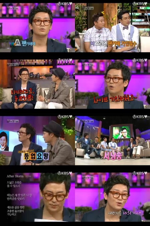 5일 방송된 KBS 2TV ‘승승장구’에 출연한 김정태는 “팬 카페에 200여 편을 올려뒀다”며 본인이 직접 지은 시 ‘after storm’을 낭송했다.