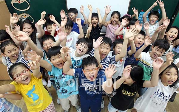 서울시 초·중·고교가 여름방학에 돌입한 14일 오전 서울 문래초등학교 학생들이 방학식을 마치며 즐거워하고 있다.