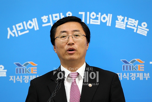 올여름 최악의 전력난이 우려되는 가운데 최중경 지식경제부 장관이 22일 오전 정부과천청사에서 김쌍수 한전 사장, 김종신 한수원 사장 등 발전사 사장단과 하계 전력수급 안정 대국민 담화문을 발표하고 있다.