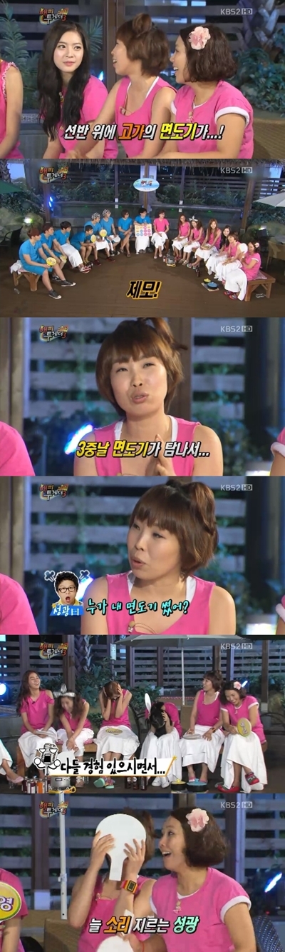 오나미는 4일 방송된 KBS 2TV '해피투게더 시즌3'에서 박성광의 3중 날 면도기를 썼다가 욕을 먹었다고 고백했다.