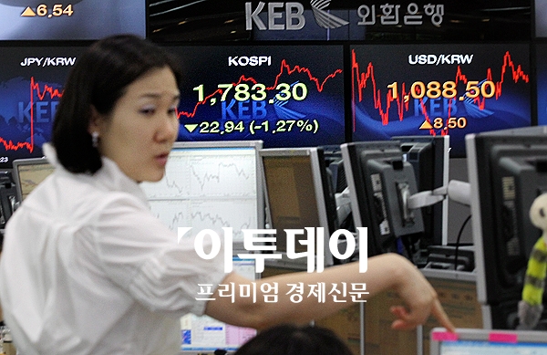 코스피 시장이 글로벌 경기침체의 우려 속에 급락하고 있다. 11일 오전 소공동 외환은행 딜링룸에서 코스피 지수가 전날보다 22.94포인트 하락한 1783.30를 나타내고 있다.
