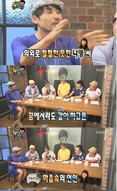 이날 노홍철은 이나영을 섭외하자고 말하며“이나영이 고급스러워 보이지만 그렇지 않다”면서 “새벽 5시까지 함께 순대국 하나 놓고 소주를 마셨다”고 말했다. 이나영이 '무한도전'에 무조건 출연하고 싶어한다고 전했다.