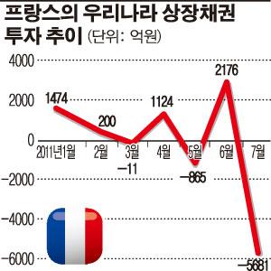한은에 따르면 지난 18일까지 외국인 투자자의 채권 순회수 규모는 5억달러다. 중국 등에서는 채권을 매입했지만 유럽계 자본이 매도하면서 7개월만에 마이너스로 돌아섰다. 프랑스를 필두로 유럽계가 자금 이탈을 주도한 것이다. 특히 유럽계 채권 투자금이 월 기준으로 마이너스를 보인 것은 2년여만에 처음이다.