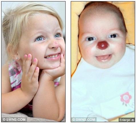 새빨간 딸기코로 태어난 여아가 정상적인 코를 되찾았다.