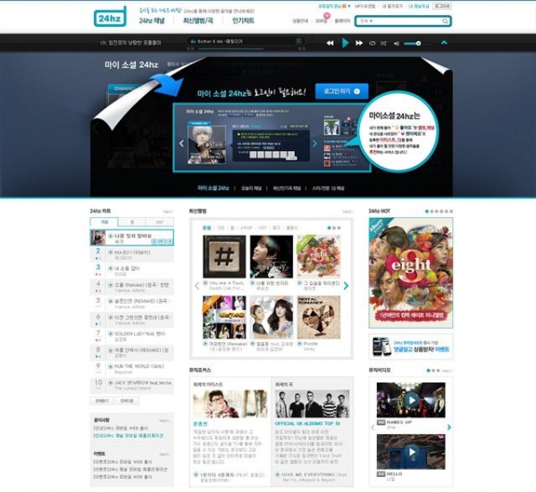 아울러 새로운 스마트폰용 애플리케이션(이하 앱) '24hz 뮤직'도 출시된다. 24일부터 앱스토어와 안드로이드 마켓에 동시에 선보인 '24hz 뮤직'은 실시간 주간차트와 최신음악/앨범은 물론, 스타와 전문가들이 직접 선곡한 플레이리스트를 제공한다. 임시저장(캐싱) 기능을 이용, 끊김 없는 음악 감상도 가능하다.
