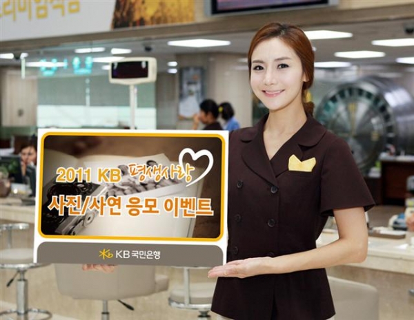 이번 이벤트는 고객들에게 ‘KB와 관련된 과거 사진’과 ‘KB와의 소중한 사연’을 응모 받아 진행되며 심사를 통해 선정되는 고객에게는 여행상품권, 리마인드 웨딩 가족 사진 촬영권, DSLR 카메라, 뮤지컬·콘서트 티켓을 증정한다. 또한 선정작은 오는 10월 ‘KB 평생사랑 사진전’에 전시될 예정이다.