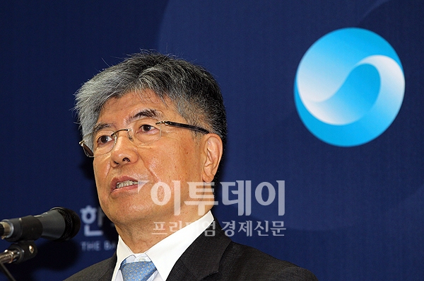 한국은행의 금융회사 검사와 조사 권한을 강화하는 내용의 한국은행법 개정안이 31일 국회 본회의를 통과했다. 김중수 한국은행 총재가 이날 오후 한국은행에서 기자회견을 열고 취재진의 질문에 답하고 있다.