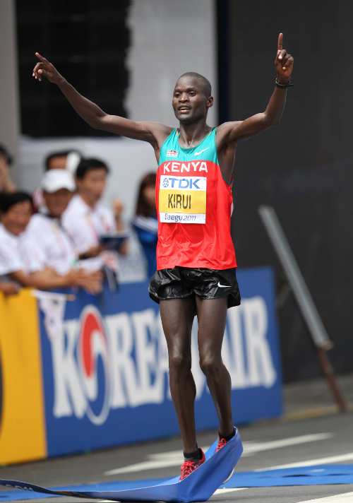 지난 2009년 베를린 세계육상선수권대회에서 대회 최고 기록(2시간6분45초)으로 우승을 차지한 아벨 키루이는 이번 대구 세계육상선수권대회에서 2시간7분38초의 기록으로 또 다시 우승의 기쁨을 누렸다.