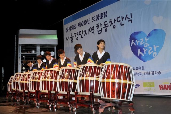 행사에는 드럼클럽을 창단하는 서울·경기 지역 16개 중학교 학생과 학부모 등 350명, 박근희 삼성생명 사장, 이시형 세로토닌 문화원 이사장,‘난타’를 기획한 송승환 PMC프로덕션 대표 등이 참석했다.