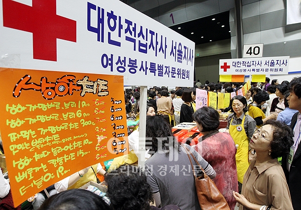 대한적십자사 취약계층돕기 기금마련 바자회가 열린 28일 오후 삼성동 코엑스 B홀에서 물건을 구입하려는 사람들로 인산인해를 이루고 있다.