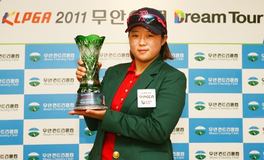 ▲박소연이 ‘KLPGA 2011 무안CC컵 드림투어 12차전’에서 생애 첫 우승컵을 품에 안았다.(사진=KLPGT)