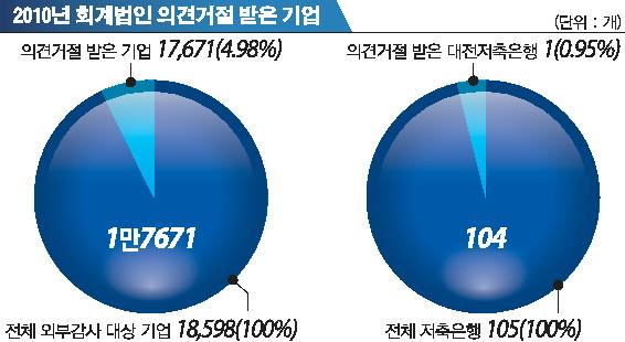 의견거절은 향후 기업의 존속 여부가 불투명하다는 뜻으로 대상 저축은행의 부실 경영이 심각하다는 것을 의미한다. 즉, 퇴출대상이라는 간접적인 표현이 될 수도 있다.