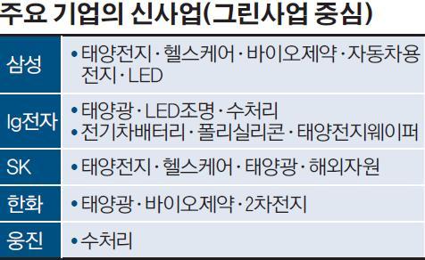 삼성을 비롯한 주요 대기업들은 급변하는 업계 판도에서 살아남아 지속가능한 성장을 위해 그린산업에 집중 투자하고 있다. 특히 태양광을 비롯한 신재생에너지, 헬스케어, 광물자원 등의 산업이 기업들의 집중적인 조명을 받고 있다.