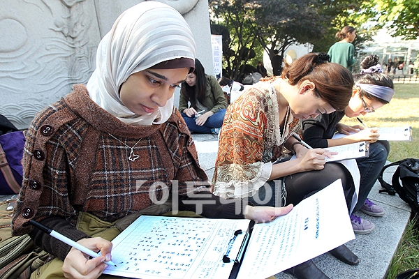 [포토]한글 글씨 쓰기대회 시험보는 외국인