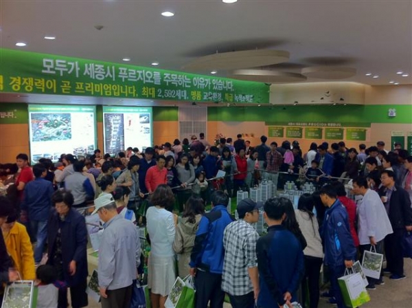 7일 대우건설에 따르면, 세종시 푸르지오가 개관한 첫 날인 7일에 약 3500 여명의 내방객, 주말 첫 날인 8일에는 7000 여명이 방문하여 총 1만여명이 넘는 내방객이 견본주택을 방문했다.