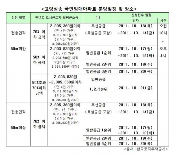 청약은 LH 파주주택전시관과 공사인터넷청약시스템(myhome.lh.or.kr)에서 오는 13~21일까지 순위별로 순차적으로 신청가능하다. 당첨자발표는 11월30일, 계약체결은 12월 14~16일까지다.
