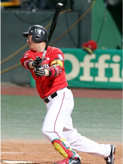 지난 11일 광주 무등구장에서 열린 2011프로야구 준PO 3차전 KIA와의 경기에서 안치용이 6회초 적시타를 터뜨려 2-0으로 앞서갔다.
