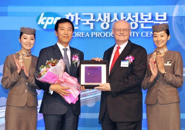 아시아나항공이 12일 서울 소공동 롯데호텔에서 한국생산성본부가 주관하는 '다우존스 지속가능경영지수 코리아 리더 기업 발표 및 인증식'에서 3년 연속 항공운송산업 리더기업에 선정됐다.