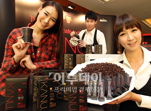 동서식품은 19일 오전 소공동 롯데호텔에서 신개념 인스턴트 원두커피 ‘KANU(카누)’ 출시기념행사를 열었다. 카누는 ‘세상에서 가장 작은 까페’라는 컨셉으로 커피 전문점에서 느낄 수 있는 여유와 향취를 함께 즐길 수 있다.
