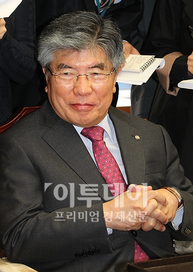 김중수 한국은행 총재가 21일 오전 서울 중구 남대문로 한국은행에서 열린 ‘시중은행장들과 금융협의회’시작전 참석자들과 이야기를 나누고 있다.