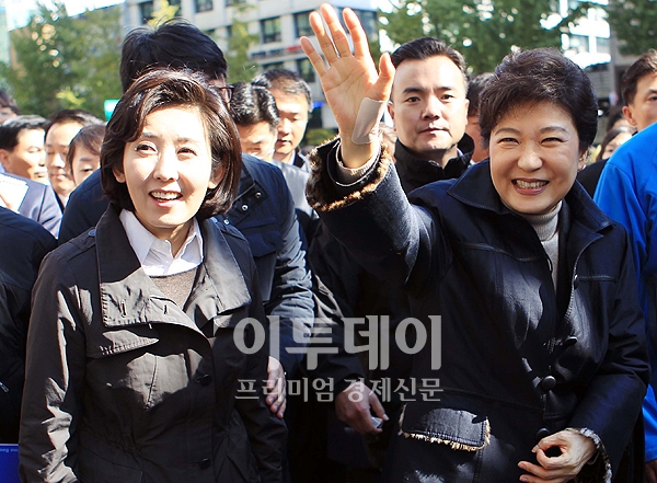 박근혜 전 대표와 나경원 서울시장후보가 25일 오전 서울 남대문로 거리유세에 동행해 시민들에게 지지를 호소하고 있다.