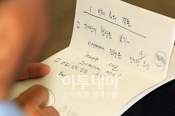 [포토]김진표 원내대표의 메모, '더이상 협상은 불가?'