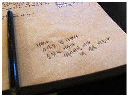 타블로는 노트 한 켠에 자신의 노래 '나쁘다'의 가사인 '나쁘다. 사랑은 참 나쁘다. 숨쉬는 이유가 되어버린 네가 내 숨을 막는다'라는 글귀를 적었다.