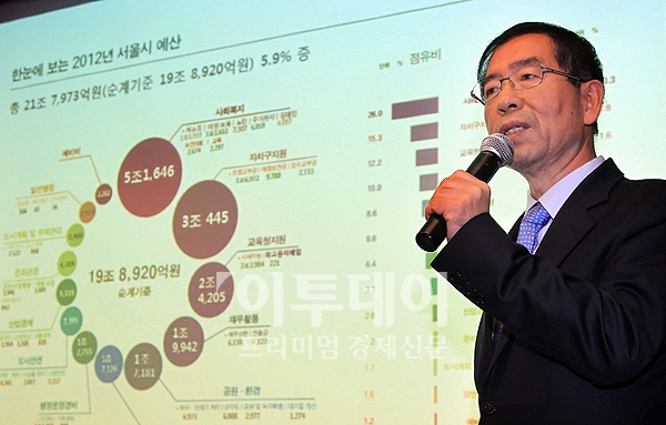박원순 서울시장이 10일 오전 서울시청 브리핑실에서 2013년도 서울시 예산안을 발표하고 있다.
