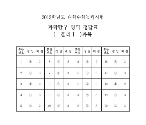 [수능] 과학탐구영역 물리I 답안