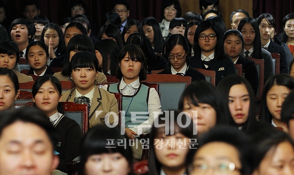 서울시 특성화고등학교 채용설명회가 열린 14일 오후 서소문별관 대회의실에서 특성화고교졸업예정자 학생들이 설명회를 경청하고 있다. 이번 채용설명회에는 우리은행,롯데백화점,롯데마트,캐논코리아 등 6개 기업이 참가했으며 참가학생 중 50명가까이 채용할 계획이다.