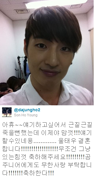 손호영은 15일 오전 자신의 트위터에 "얘기하고 싶어서 근질근질 죽을 뻔 했는데 이제야 맘껏 얘기할 수 있네요"고 메시지를 올려 눈길을 끌었다.