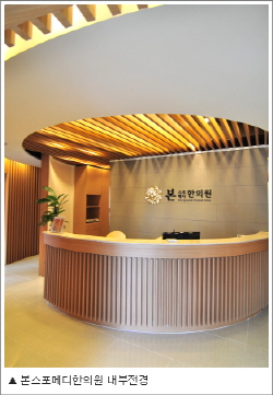 ‘본스포메디’란 스포츠와 메디컬의 합성어로, 운동이나 사고로 인한 통증 치료를 전문으로 하는 한의원이라는 의미이다. 전직 스노우보드, 웨이크보드 프로 선수 출신인 김수경 원장은 선수 생활의 경험에서 기인한 관련 손상에 대한 정확한 이해와 충분한 노하우를 토대로 환자 재활 기간을 최대한 단축시키고 있다.