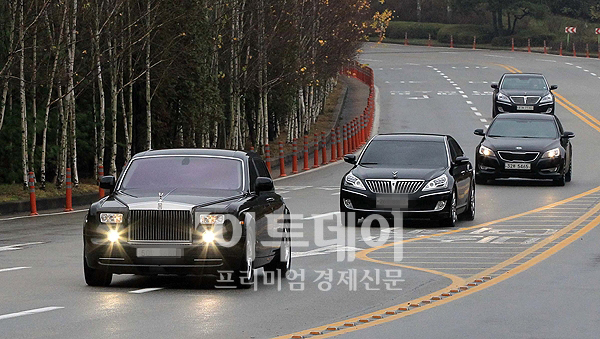 이건희 회장을 태운 롤스로이스 차량이 18일 오전 호암 이병철 회장의 24주기 추도식이 열린 경기 용인의 선영으로 들어가고 있다.
