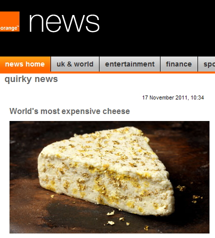 특히 치즈 속에 금가루가 촘촘히 박혀 있어 일반 스틸턴 치즈보다 67배나 비싼 가격이 매겨졌다.
