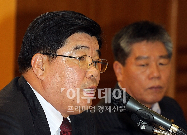 신동규 은행엽합회장이 22일 오전 서울 명동 은행회관에서 열린 출입기자단 오찬간담회에서 임기종료를 앞둔 소회등을 밝히고 있다.