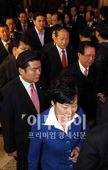 [포토]한미 FTA 비준안 통과, 의원총회 참석하는 한나라당 의원들
