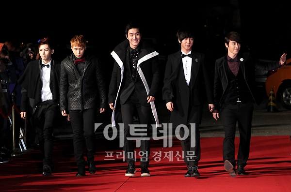 그룹 슈퍼주니어가 24일 오후 서울 올림픽 체조 경기장에서 열린 ‘2011 멜론 뮤직 어워드’에 레드 카펫을 밟으며 참석하고 있다.