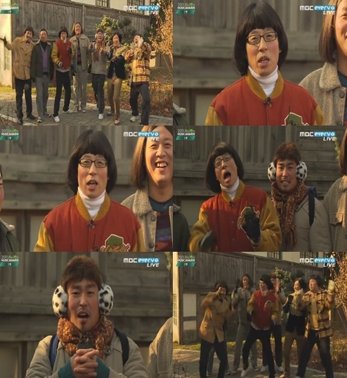 이후 ‘무한도전’ 멤버들의 모습이 영상으로 흘러나왔다. ‘무한도전’ 멤버들은 촌스럽고 코믹한 의상으로 등장해 이목을 집중시켰다.
