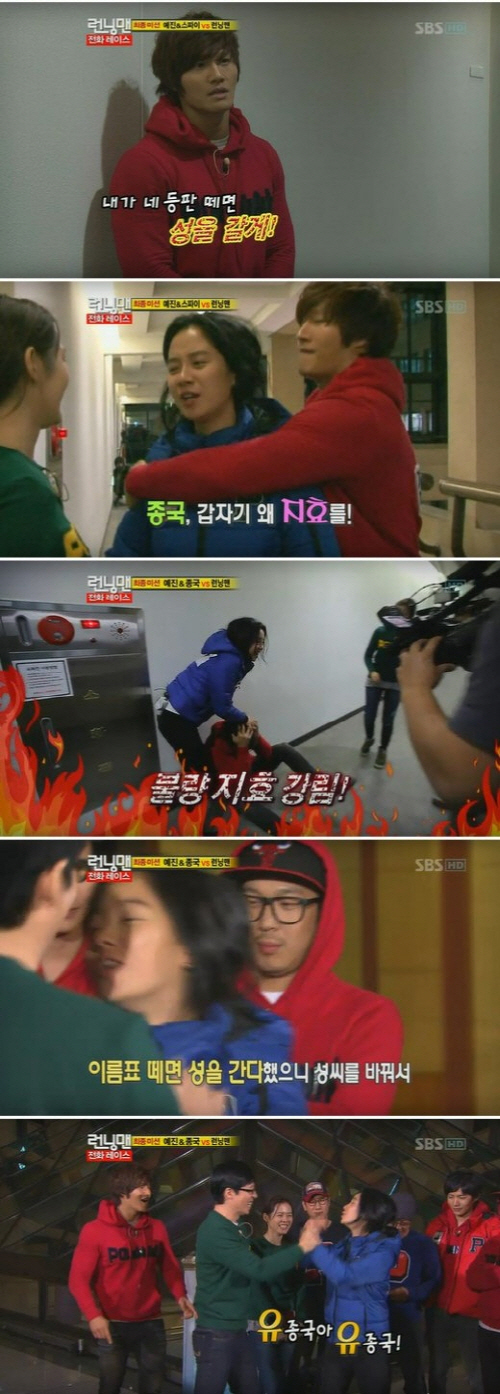 이어 레이스가 끝나고 승리한 스파이 김종국을 "송종국, 유종국 내가 너 다시는 안봐"라며 분노를 표출해 웃음을 선사했다.