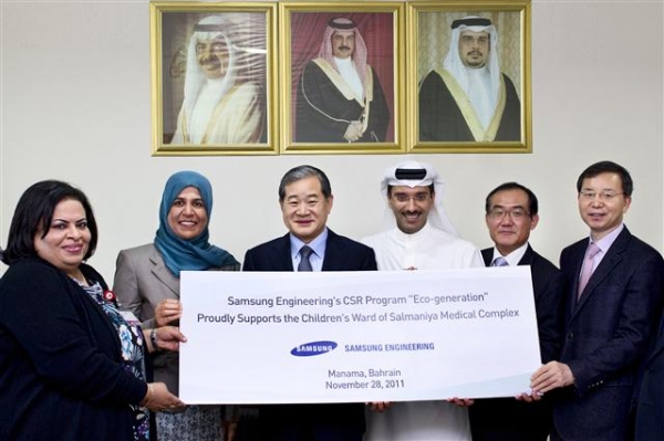 삼성엔지니어링은 지난 28일(현지시각) 바레인 마나마 지역에 있는 살마니아 병원에서 박기석 사장과 바레인 보건부 장관 등이 참석한 가운데 소아의료병동의 증설을 위한 미화 10만 달러를 기부(사진)했다고 밝혔다.