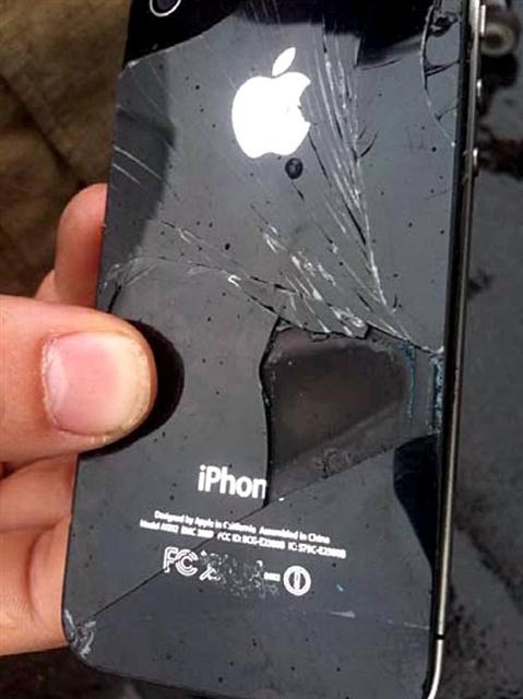 ▲호주의 한 비행기 안에서 25일(현지시간) 아이폰 화재 사고가 발생했다고 현지언론이 보도했다. 사진은 사고 후 심하게 훼손된 아이폰 케이스. 레지널익스프레스