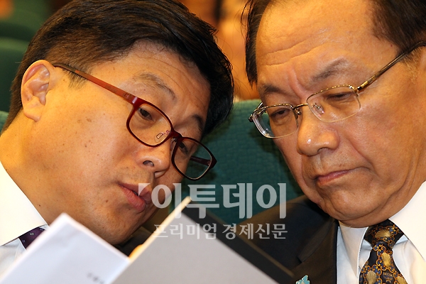 [포토]심각한 이야기 나누는 황우여 원내대표-김정권 사무총장