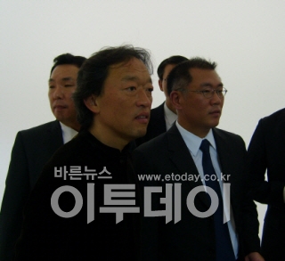 ▲정의선 현대차그룹 부회장(사진 오른쪽)이 30일(현지시간) 프랑스 파리에서 열린 2010 파리모터쇼를 찾았다. 사진은 지휘자 정명훈 씨와 함께 기아차 부스를 둘러보는 모습